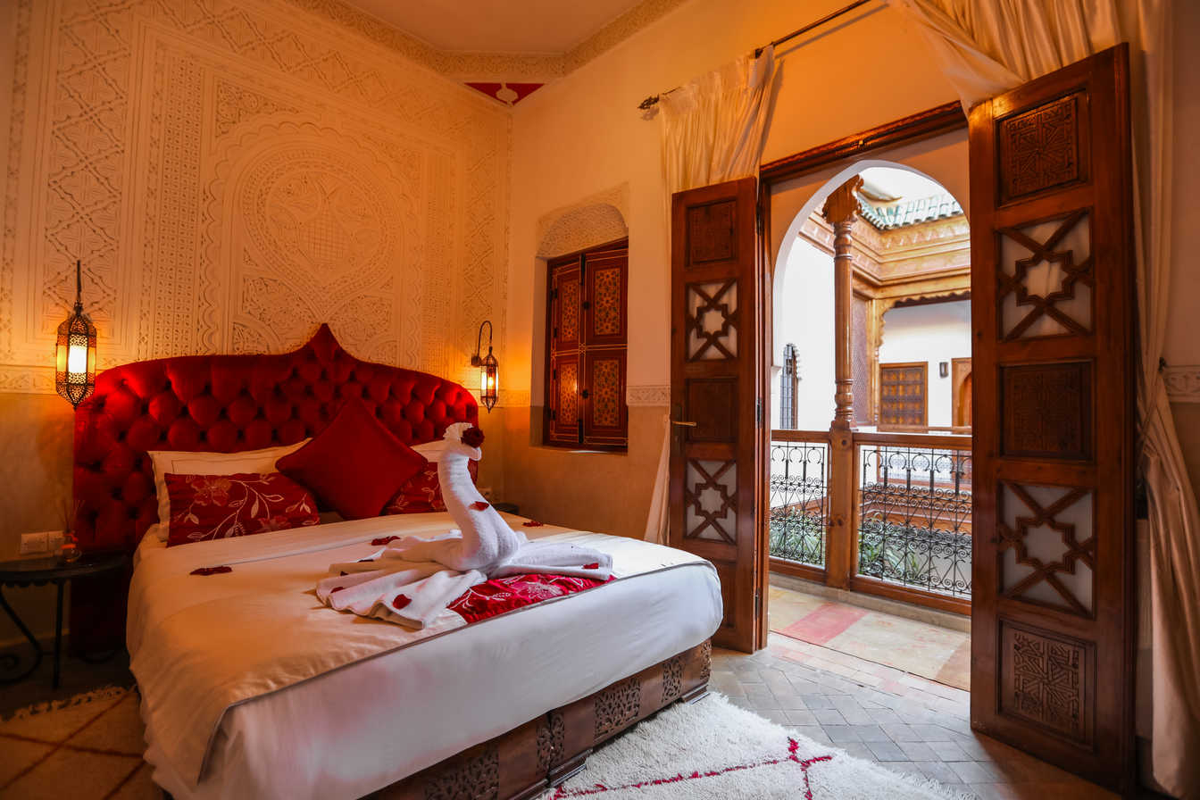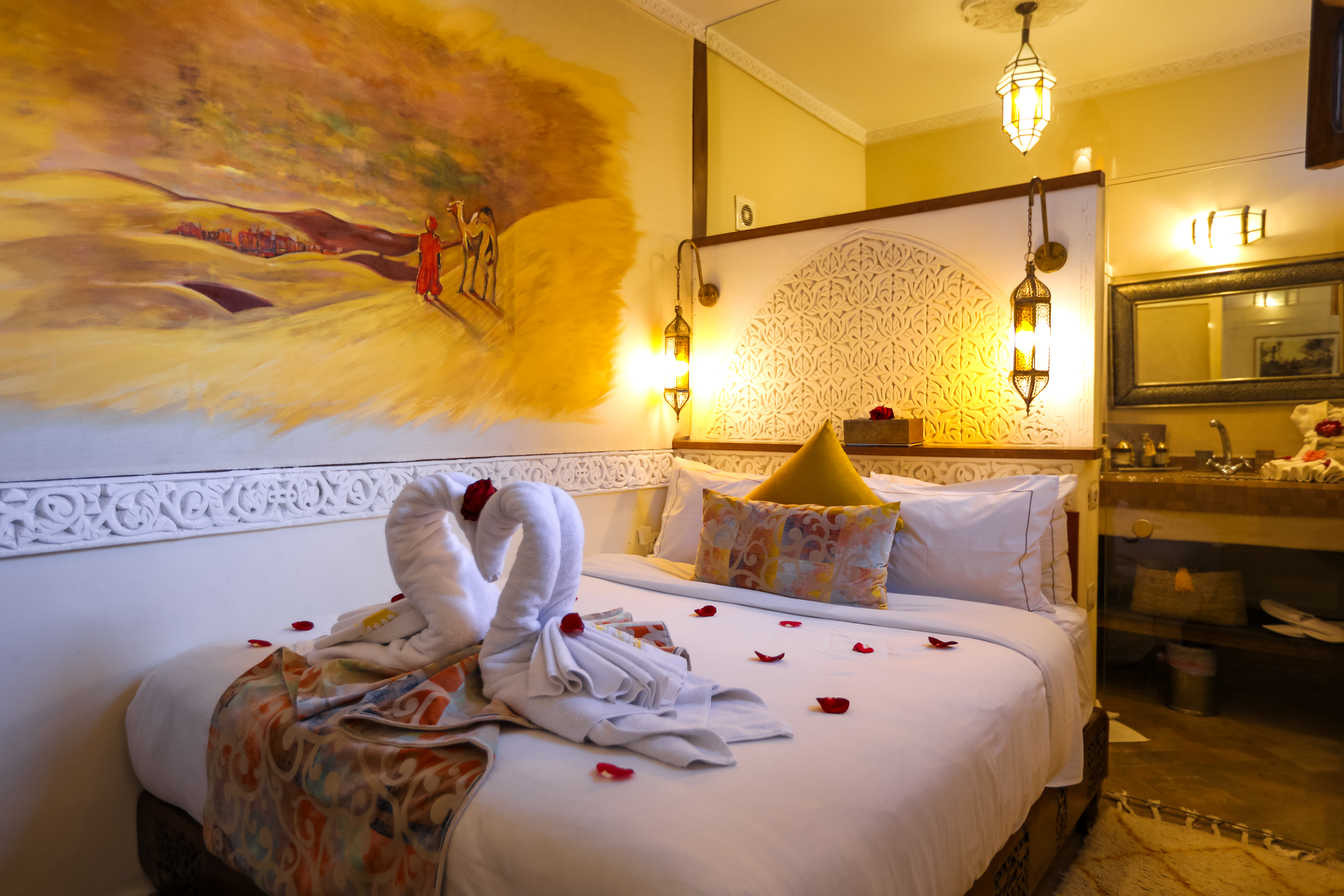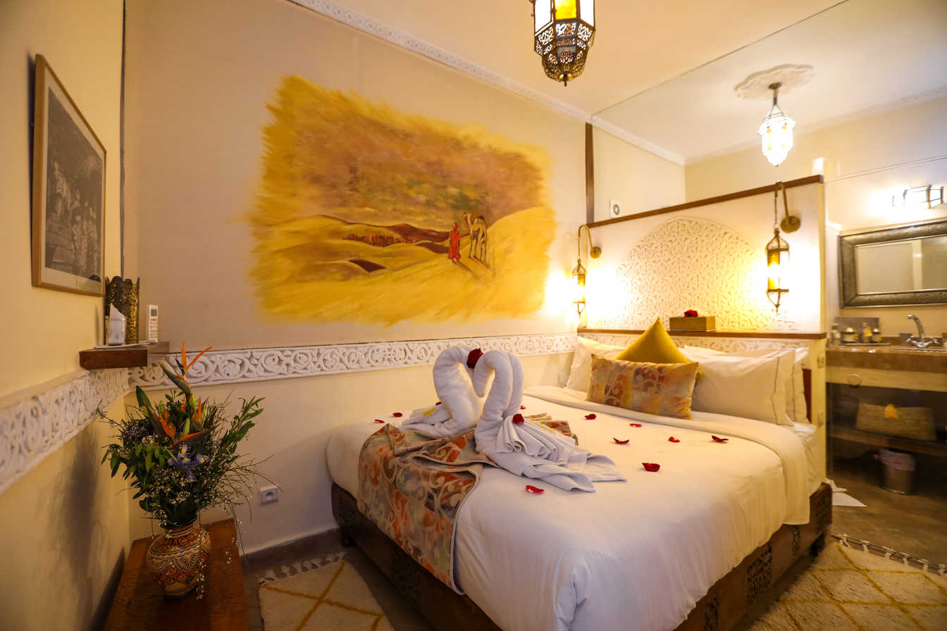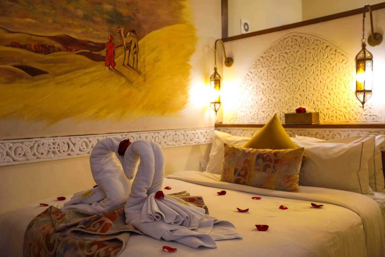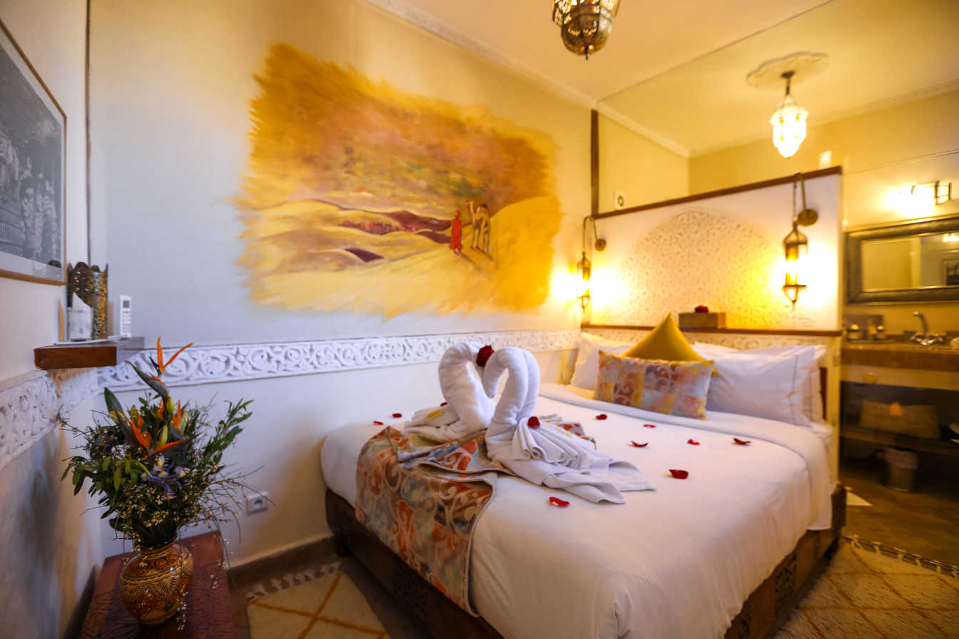 Geräumiges Deluxe-Zimmer mit Premium-Ausstattung und authentischem marokkanischem Design. Genießen Sie Luxus und Komfort.