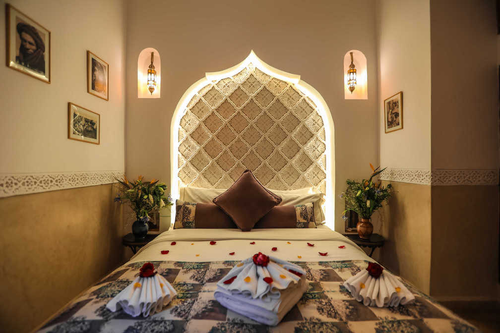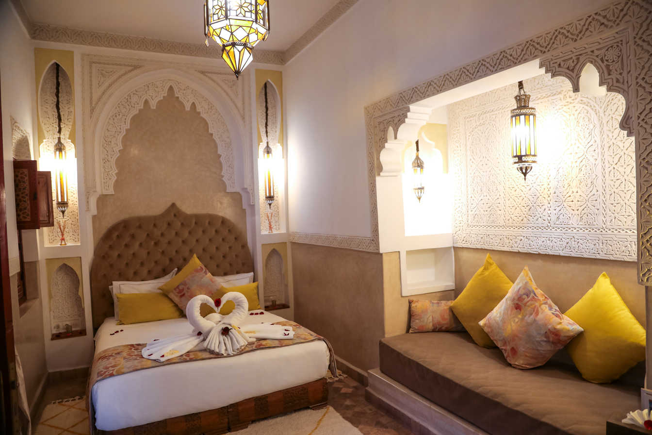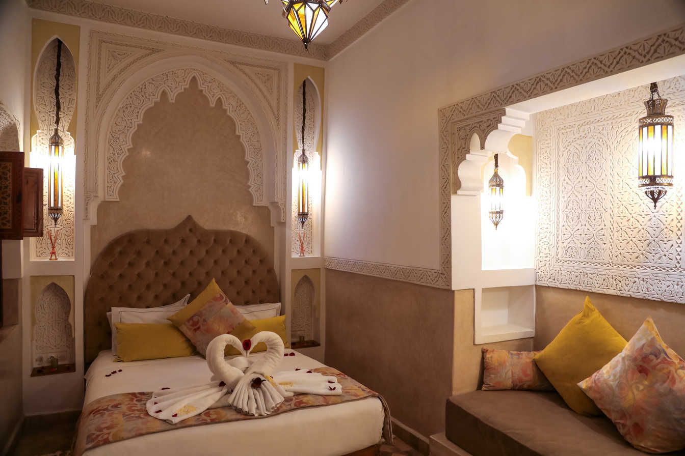 Nuestra suite premium con lujo marroquí auténtico, dormitorio y espacio de living separados, y servicios exclusivos.