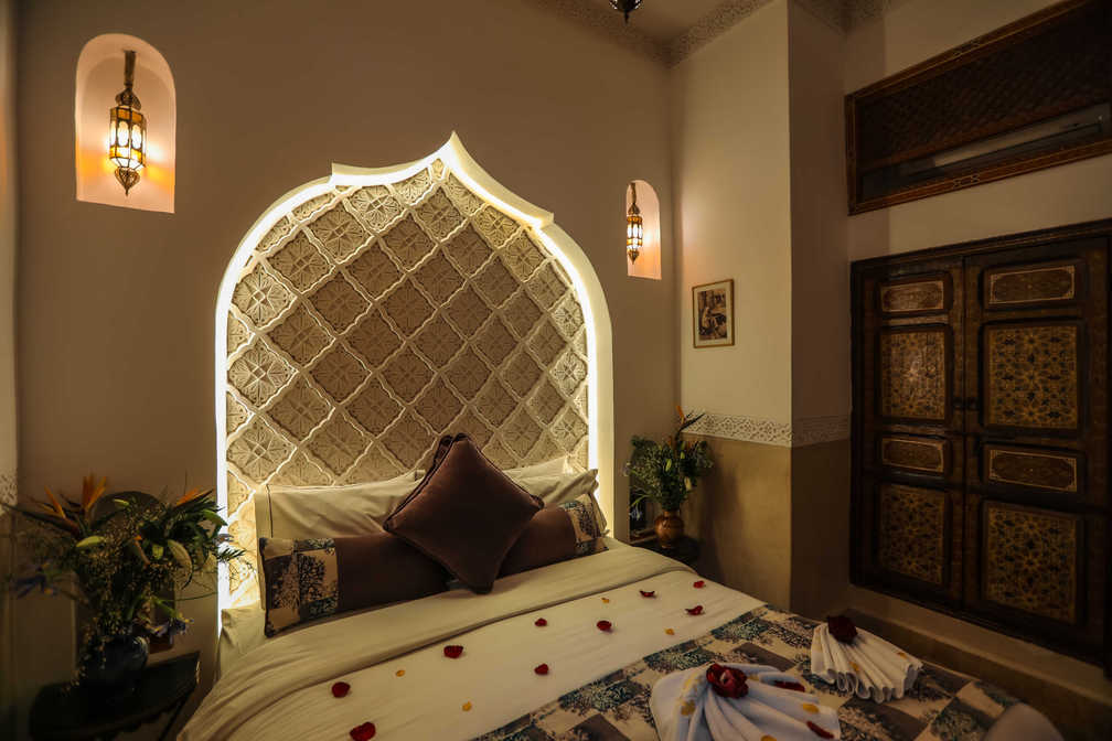 Habitación de lujo espaciosa con amenidades premium y diseño marroquí auténtico. Disfruta del lujo y la comodidad.