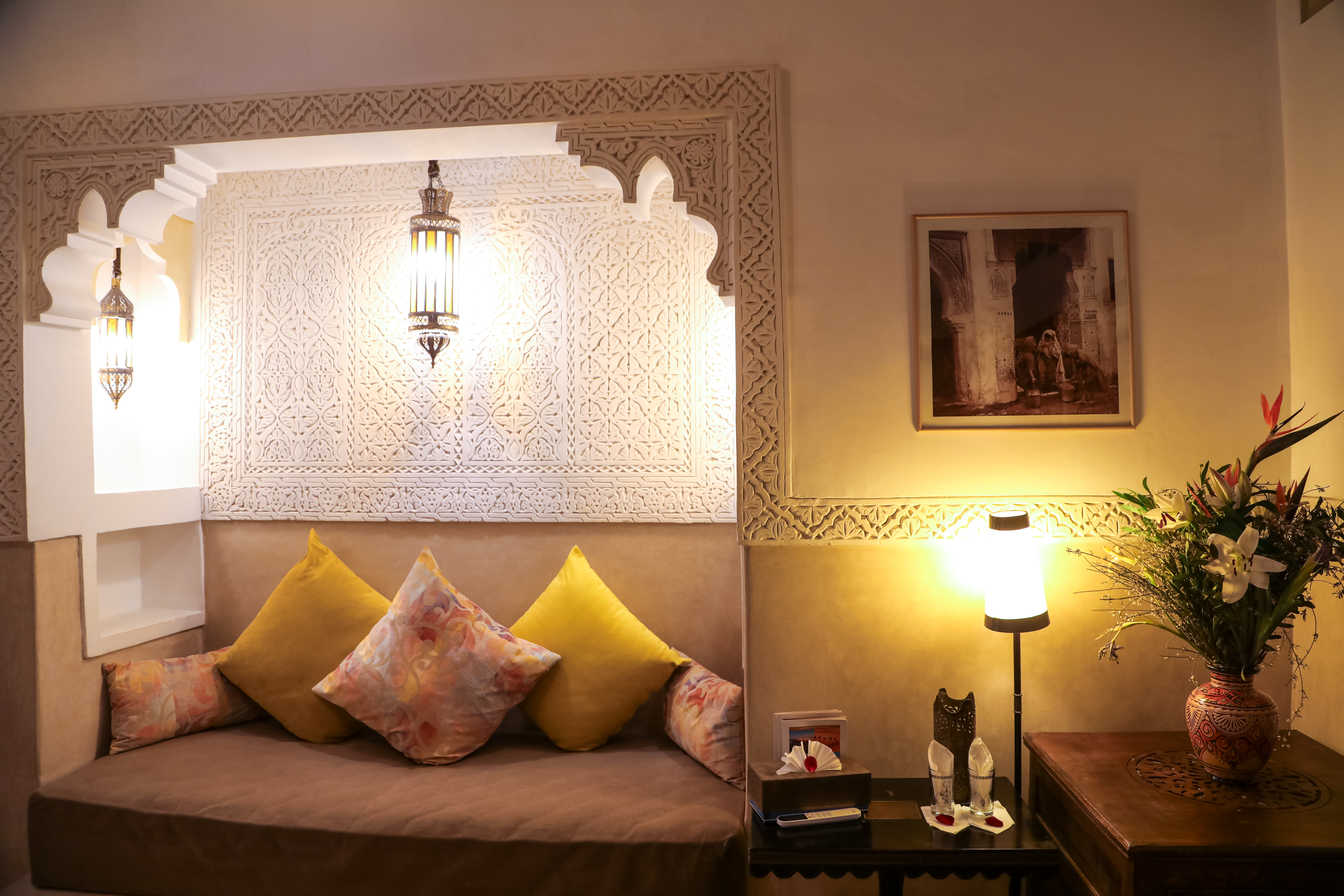 La nostra suite premium con lusso marocchino autentico, camera da letto e spazio living separati, e servizi esclusivi.